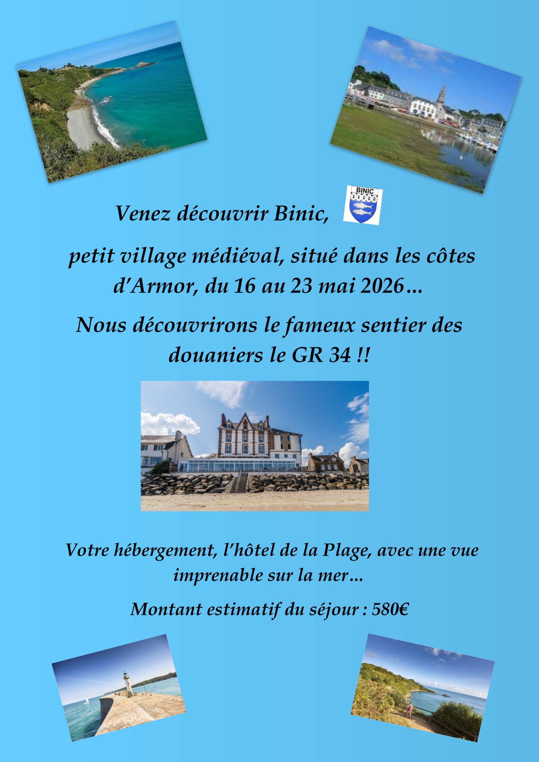 Vous pourrez également participer à nos séjours d’une semaine en province (en principe 3 à 4 par an dont 1 à la neige)