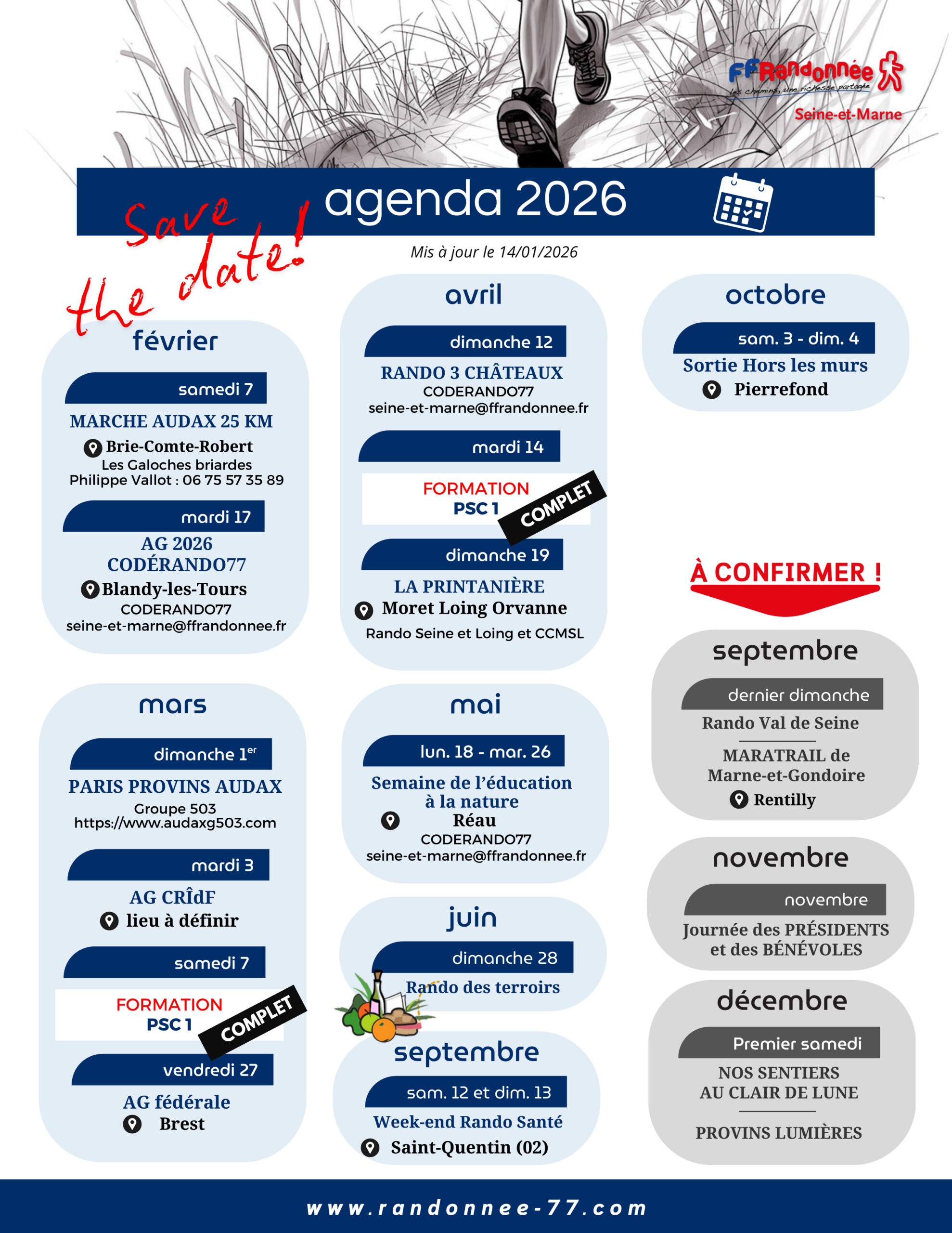 Les mardis 20 km, mercredis 15 km et dimanches 15 ou 20 km, toute la journée avec pique-nique.